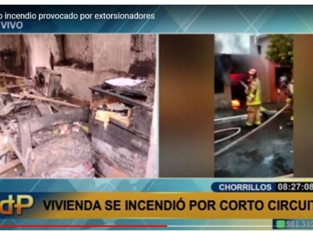 Una vivienda en Chorrillos es el escenario de un incendio. Algunos vecinos de la zona culpan de este incidente a los extorsionadores del ´Gota a Gota´; sin embargo, los residentes de la casa descartan esa versión y atribuyen el siniestro a un problema en el sistema eléctrico.