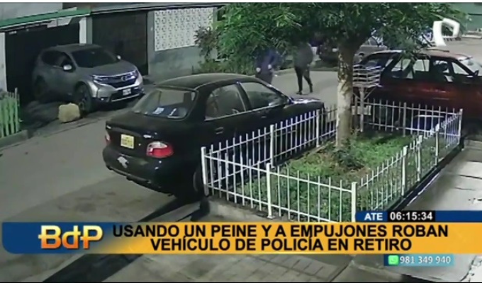 Inseguridad en Ate: roban auto de policía en retiro utilizando un peine