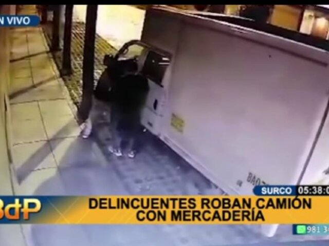 Dos sujetos encapuchados fuerzan la cerradura de un camión lleno de mercadería con un peine y logran llevarse el vehículo. La víctima indica que este hecho ocurrió en la noche frente a su vivienda en Surco.