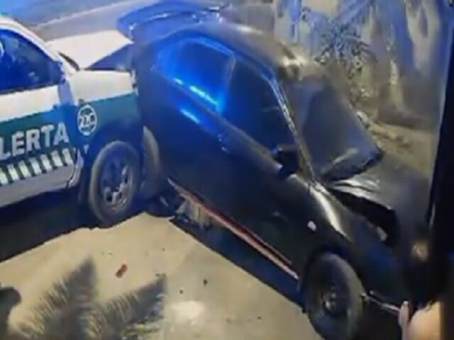 Un patrullero destruyó dos carros tras impactar contra una vivienda, ubicada en la avenida Vista Alegre de Santa Isabel de Villa en Surco.