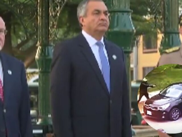 Se realiza un reconocimiento a los serenos y policías que capturaron a unos presuntos sicarios. Este evento se viene desarrollando en conjunto de la Municipalidad de Surco , las autoridades policiales y el Ministerio del Interior en la Plaza de Armas del distrito.
