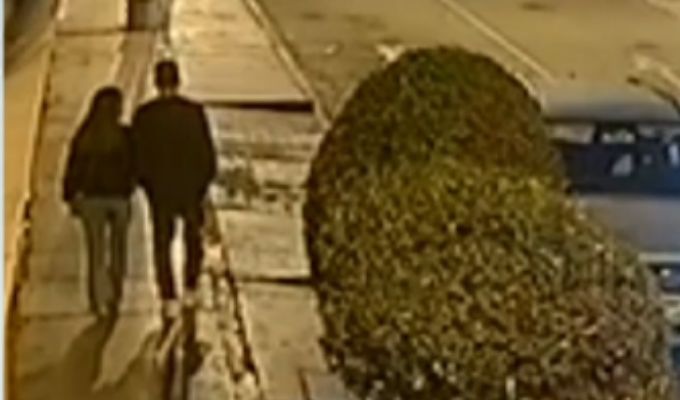 Las cámaras de seguridad captaron el momento preciso en el que dos criminales bajan de un vehículo de alta gama y atacan violentamente a la pareja.