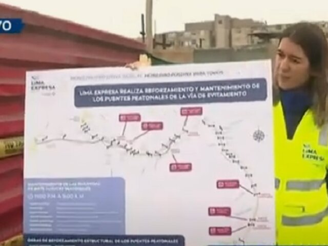Lima Expresa está presentando los avances de reforzamiento y mantenimiento que está realizando en nueve puentes peatonales que cruzan la vía Evitamiento. Buenos Días Perú llegó hasta el puente Porvenir para recibir más detalles sobre estos trabajos.
