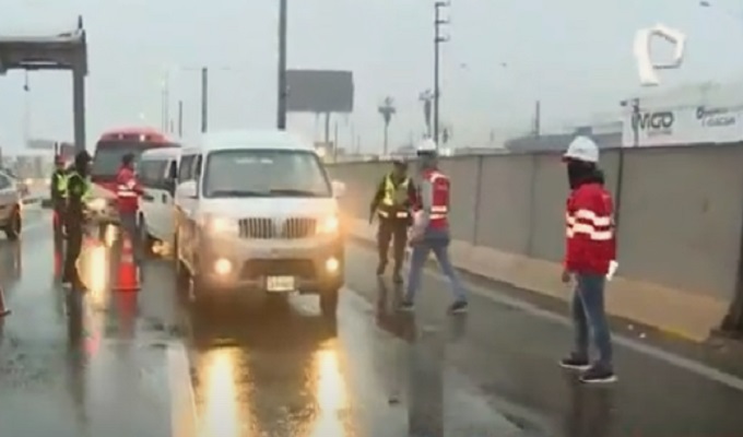 Cámaras de Buenos Días Perú llegó hasta la altura del peaje Villa, en Villa el Salvador, en donde los fiscalizadores detuvieron a varios vehículos para comprobar que tuvieran todos los permisos necesarios para transportar pasajeros. A pesar de la garúa, los agentes de la Sutran se dedicaron a intervenir a cada van o cúster que pasaba por la zona.