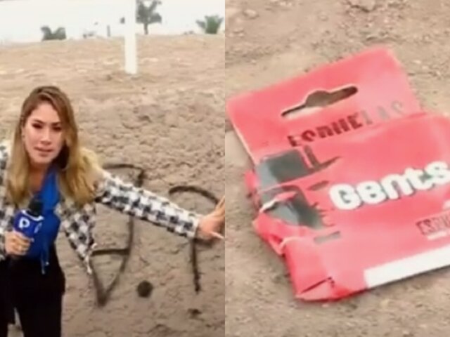 Lo más indignante, es que en plena trasmisión en vivo también se hallaron cajas de condones usados, lo que indicaría que personas aprovecharían la oscuridad y lo solitario de la huaca para utilizarla como 'hotel al paso'.