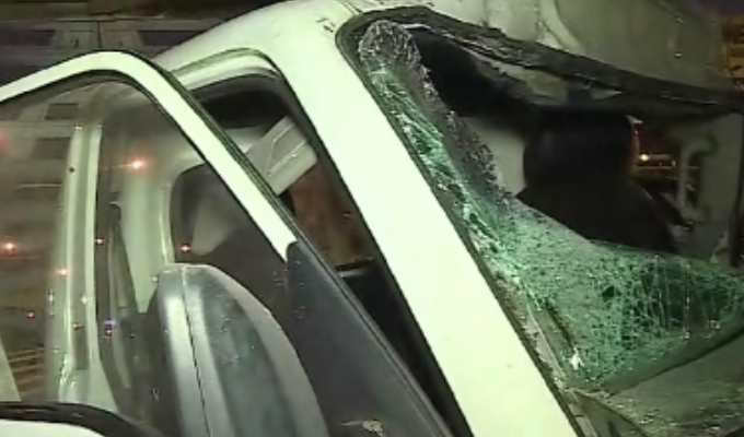 Según los testigos, el conductor de la camioneta salió ileso, pero su copiloto resultó herido y fue atendido por paramédicos.
