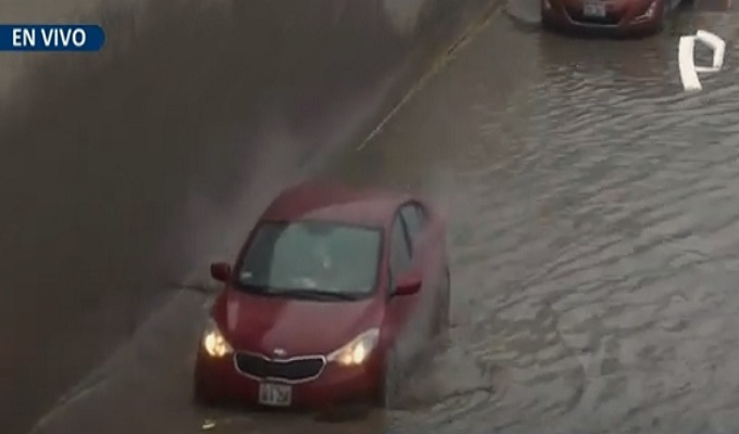Por otro lado, el equipo de Panamericana Televisión se acercó al bypass, siempre propenso a la inundación durante fuertes lluvias, y ahora se ha convertido en lo que puede describirse como una enorme piscina en medio de la vía. Los vehículos avanzan con dificultad, con al menos una docena de unidades detenidas por el agua. Es particularmente inquietante debido al daño potencial que puede causarse a los vehículos, especialmente a las llantas y la carrocería.