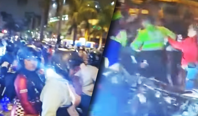 Todo habría ocurrido luego que el efectivo de tránsito le pidiera avanzar a venezolanos motorizados que permanecían en la pista ocasionando fuerte tráfico en la zona.