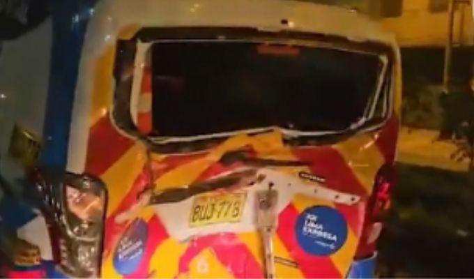 Tras el accidente del motociclista se procedió a cercar este espacio; no obstante, minutos después apareció una miniván que, aparentemente no se percata de las diligencias que ocurrían en este punto de la Vía de Evitamiento y terminó impactando contra la unidad de Lima Expresa.