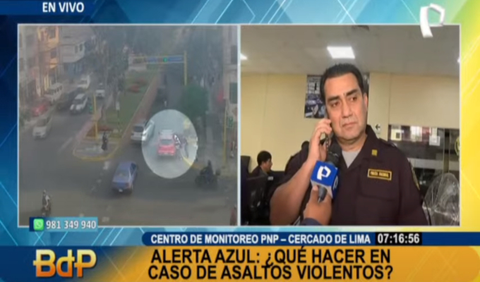 Tras el asalto de un cambista a plena luz del día en el Rímac. Un equipo de Buenos Días Perú se trasladó hasta el centro de monitoreo de la Policía Nacional del Perú (PNP) para conocer la nueva estrategia de los agentes denominada “Alerta azul”.