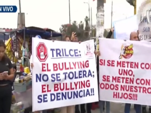 Con pancartas en la mano y gritos de ayuda, los padres del colegio Trilce de Los Olivos denunciaron que dentro de las instalaciones del plantel se vienen registrando casos de bullying y acoso sexual.