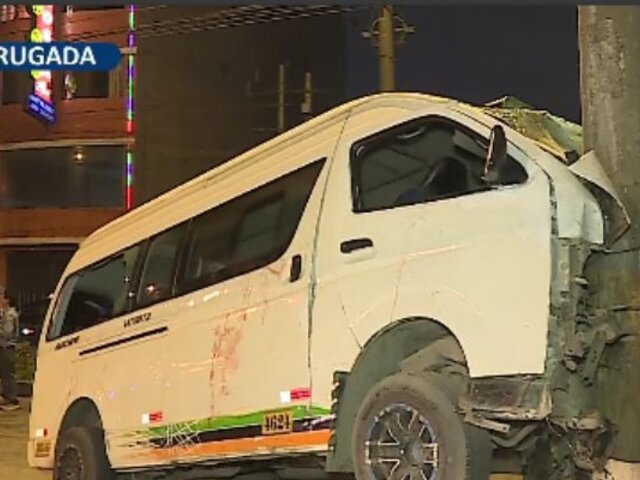 Alrededor de 10 personas resultaron heridas luego de que una combi impactara contra un poste de alumbrado público en el kilómetro 7 de la Carretera Central, Ate.