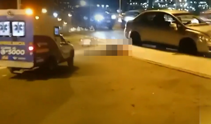 El conductor del auto no logró verlo y terminó estrellándose contra él y producto del fuerte impacto su muerte fue instantánea quedan sus restos sobre el asfalto.