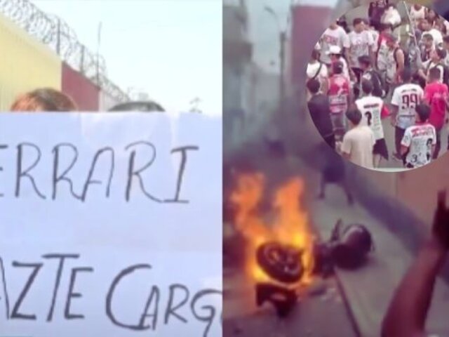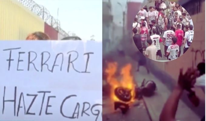 En los carteles de los vecinos de Ate se le exige a Ferrari que pague los daños ocasionados por los malos hinchas.