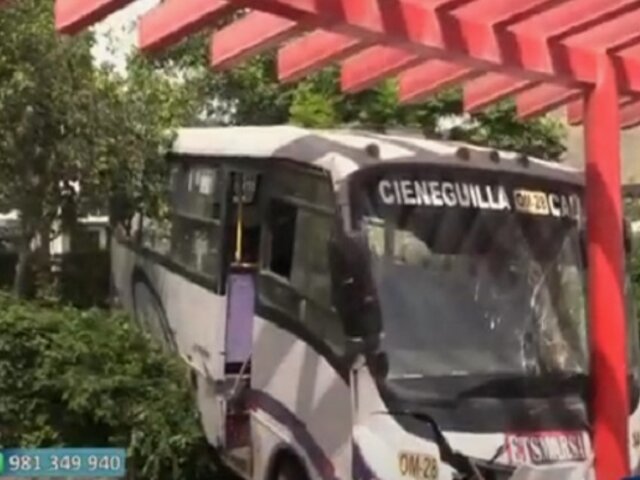 Un bus de transporte público se empotró en una estructura en la plaza central de Manchay, y dejó gravemente herida a una trabajadora municipal de áreas verdes. El accidente ocurrió mientras la víctima realizaba sus labores durante el día.