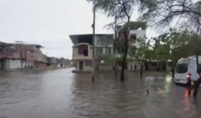 Calles y algunas casas de Piura quedaron inundadas tras 14 horas de lluvia. En la avenida Sullana con Circunvalación se observa un importante caudal de agua, causado por las intensas precipitaciones.