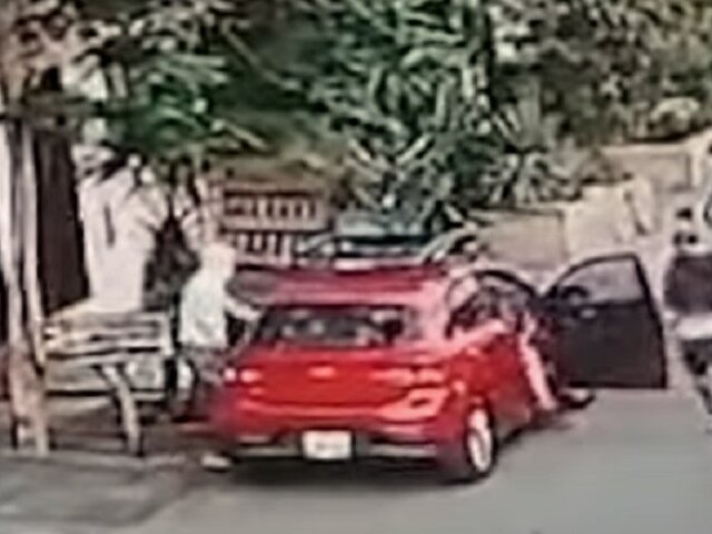 En menos de un minuto, las víctimas fueron abordadas por hampones armados que descendieron de un taxi blanco y un auto azul. Uno de los asaltantes se dirigió directamente hacia la conductora, mientras que el otro se enfocó en la copiloto, a quien le arrebató una mochila con el dinero recién retirado.
