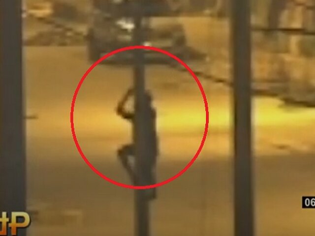 A este delincuente no le importó poner su vida en riesgo. Un sujeto fue sorprendido robando cables de los postes en Villa El Salvador.