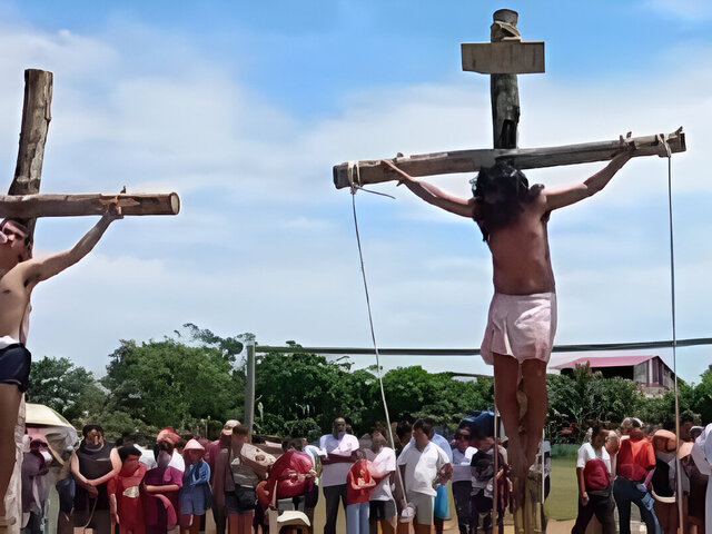 La escena de la crucifixión fue especialmente intensa y apasionada, ya que colocaron cruces en las cuales subieron a los actores para representar el momento de manera más realista.