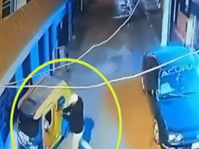 Fue víctima de dos sujetos que fingiendo ser pasajeros lo acribillaron en una calle de SJM. En este registro se da cuenta de la llegada de este motorizado que en su trayecto pierde el control de su unidad y se estrella contra una vivienda.
