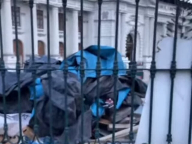 Un equipo de Buenos Días Perú llegó hasta las inmediaciones de la institución y pudo captar pedazos de madera, carteles y hasta vasos, materiales que habrían sido sacados de las diversas oficinas del Parlamento.