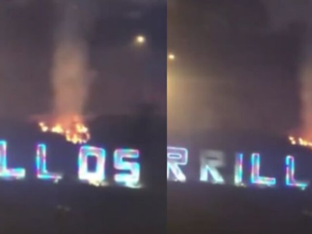 De acuerdo a la información preliminar, un árbol, que se encontraba a pocos metros del icónico letrero del distrito, empezó a arder.