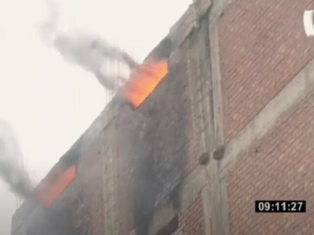 Cámaras de Buenos Días Perú registraron que las llamas han tomado fuerza en el último piso del inmueble y han generado una gran columna de humo negro.