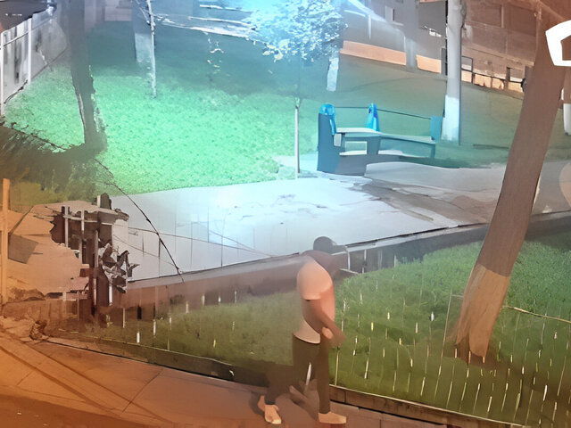 En los videos de las cámaras de seguridad se observa a un sujeto hablar por teléfono alrededor de un parque, aparentemente vacío.