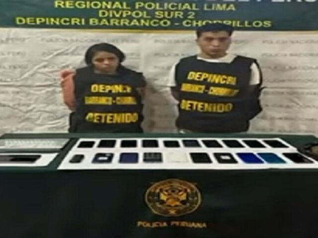 En un golpe contra la criminalidad, la Policía Nacional ha capturado a una pareja dedicada a la receptación de celulares robados. En un operativo realizado en las últimas 48 horas en la zona de Barranco-Chorrillos, se les encontró en posesión de una gran cantidad de teléfonos móviles.