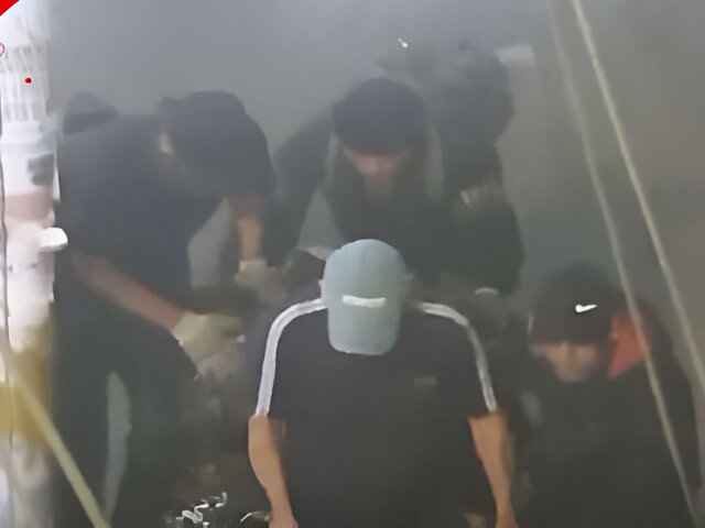 Las cámaras de seguridad de Ate Vitarte captaron cómo unos delincuentes hicieron uso de una sábana con diseño de tigre para esconder una caja fuerte que robaron de una casa de cambio.