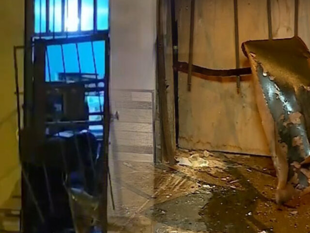 En el distrito de el Agustino, desconocidos lanzaron un explosivo contra un local comercial que opera como un salón - spa. La fuerte detonación reventó las ventanas y destrozó la puerta metálica del negocio.
