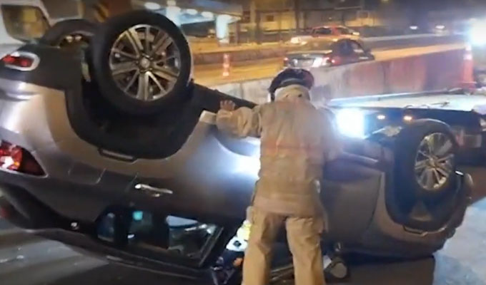 ¡Se salvó de morir!: Conductor sale ileso tras volcar su vehículo en SMP
