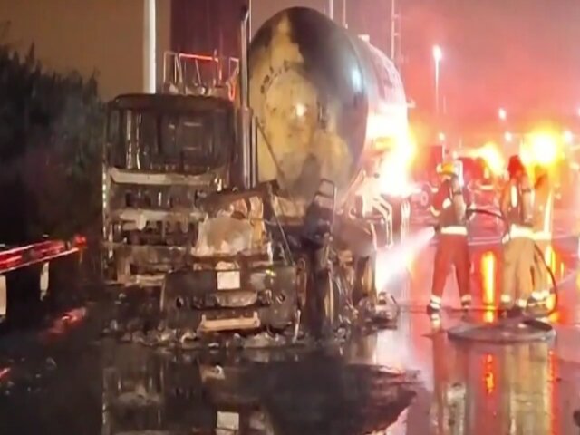 En horas de la madrugada de este martes 18 de junio, el choque entre dos camiones cisterna que transportaban combustibles a la altura del kilometro 70 de la Panamericana Sur en Chilca provocó un incendio.