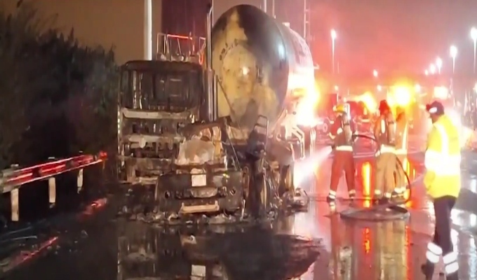 ¡Peligro! Choque entre camiones cisterna provocan incendio en Chilca