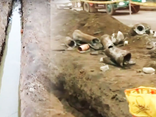 En el distrito de Villa María del Triunfo, los vecinos de la zona del asentamiento humano Virgen De Lourdes denuncian el abandono de unas obras de agua y desagüe desde octubre del año pasado.