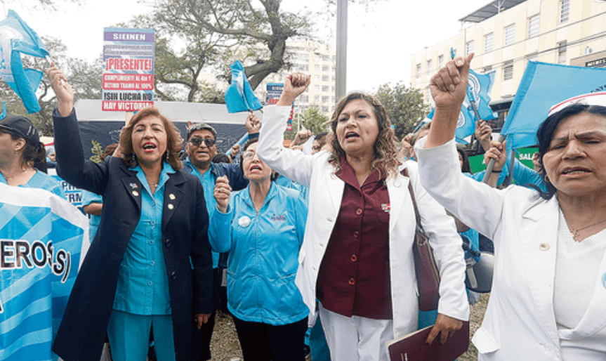 Personal médico y administrativo de diversos hospitales realizaron una protesta en el frontis del Ministerio de Salud denunciando que, desde hace 12 años, no reciben el aumento salarial que les corresponde de acuerdo a ley.