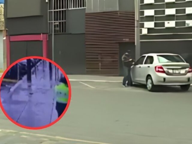 Luego del enfrentamiento, en el que terminó herida la aparente trabajadora sexual por un impacto de bala, apareció un agente de la Policía Nacional del Perú (PNP) quien amenazó con su arma al hombre, logrando hacer que el sujeto hiciera una señal de rendición.