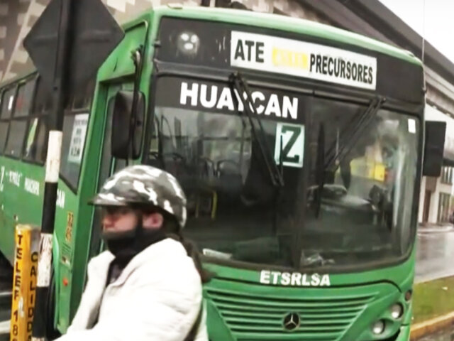 En la avenida Universitaria, a una cuadra del centro comercial Plaza San Miguel, un bus que realiza el servicio de transporte público desde Huaycán hasta 28 de julio, se despistó debido a la humedad en las pistas.