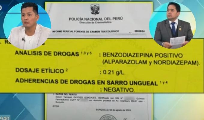 José Antonio Palacios, abogado de la policía que acusó a su colega de abuso sexual, ha presentado pruebas contundentes que contradicen las declaraciones previas del suboficial Andrés Cruces Rodas y su defensa. En una entrevista con Buenos Días Perú, Palacios desmintió las afirmaciones de que no se consumieron sustancias estupefacientes antes del acto, y mostró resultados toxicológicos que indican la presencia de alprazolam y nordiazepam en la víctima.