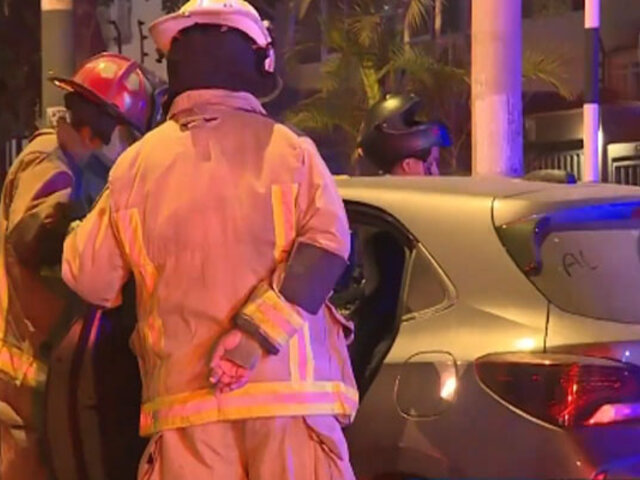 En el distrito de San Isidro, el violento choque entre un auto y una motocicleta dejó a una persona con severas heridas en la avenida Los Pinos con Javier Prado.
