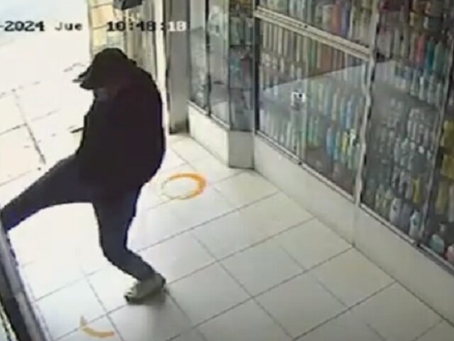 Delincuente rompió puerta a patadas, pero no logró su cometido: frustran robo a botica en SJL
