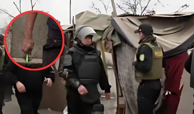 Una de las ocupantes reaccionó de forma violenta durante el desalojo. En un momento de descuido, la mujer tomó un cutter e intentó atacar al personal municipal.