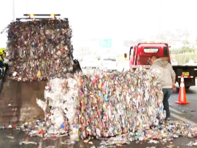 Tras el impacto, la vía quedó bloqueada por la gran cantidad de botellas plásticas regadas en toda la pista, dificultando el libre tránsito.