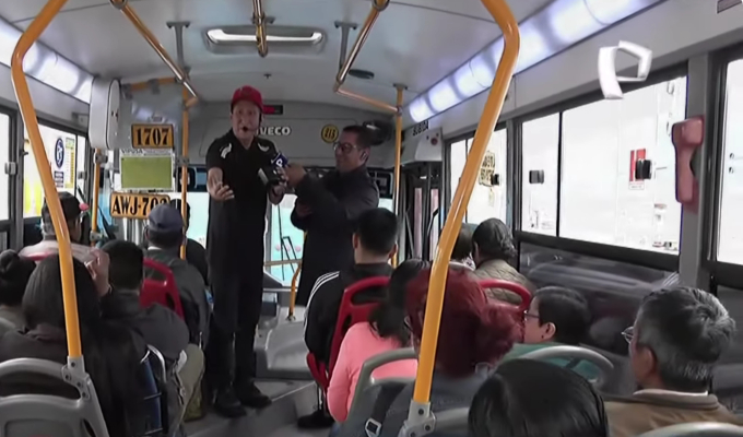 Inicia tu día con buen humor: “Wiwi” se sube a los buses y alegra el viaje de los pasajeros