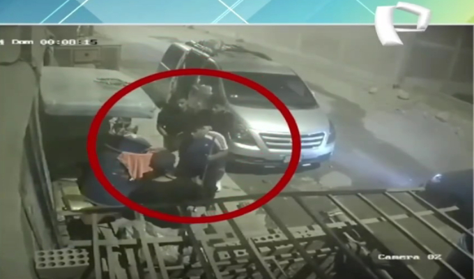 En las imágenes de las cámaras de seguridad, se observa a cuatro hampones que llegaron hasta el lugar de su trabajo dónde se encontraba con sus parientes. Con armas en mano, los delincuentes ingresaron con su víctima al interior para golpearlo y posterior a ello asaltarlo.