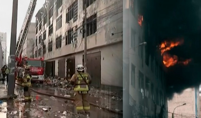 Cercado de Lima: bomberos continúan trabajando tras incendio que consumió almacén