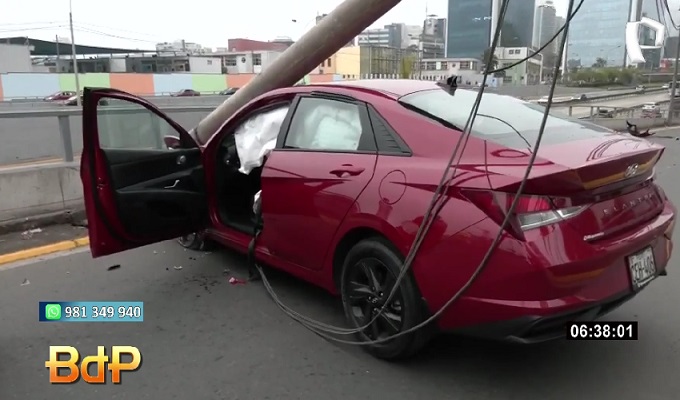 La mañana de este lunes, un accidente vehicular en la Vía Expresa en San Isidro dejó a una conductora herida y causó un gran impacto en el tránsito de la zona ubicada a a la altura del puente Aramburú y frente al colegio Alfonso Ugarte. El hecho se produjo cuando un carro rojo perdió el control y chocó contra un poste de alumbrado público, lo que provocó que la estructura colapsara y obstruyera uno de los carriles de acceso a la rampa de la Vía Expresa.