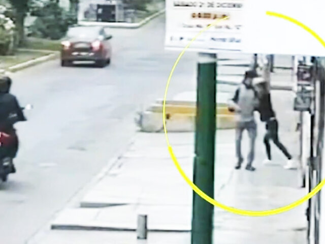 Una cámara de seguridad del lugar, registró el momento cuando la víctima estaba detenida en la vereda respondiendo unos mensajes, pero no se percató que detrás de él estaba uno de los delincuentes.