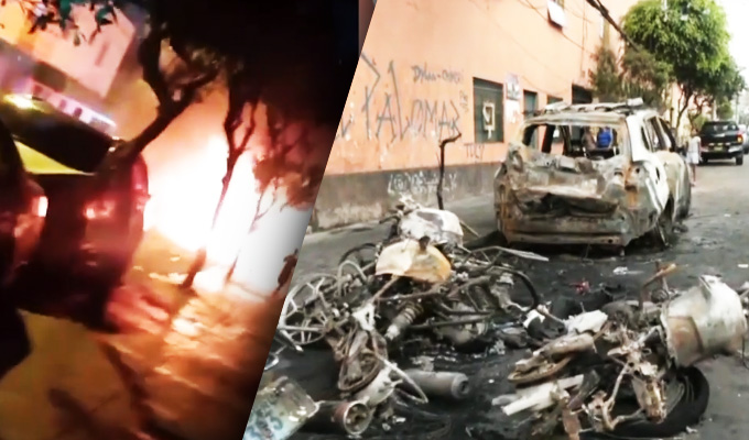 Algunos testigos indican que unos sujetos prendieron fuego a las motos que estaban estacionadas detrás de la camioneta, la basura que estaba en la pista también fue alcanzada por las llamas las llamas extendiendo el fuego hasta alcanzar el otro vehículo.