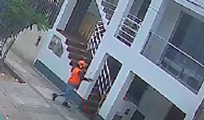 Las cámaras de seguridad ubicada a pocos metros de su domicilio captaron el momento exacto, donde el criminal se acerca a su víctima, y sin ningún tipo de remordimiento percuta su arma en más de dos ocasiones.